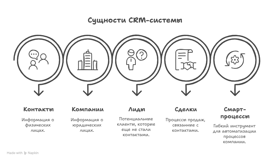 В БитрикОс24 к CRM относятся такивные сущности, CRM в Битрикак:с24: