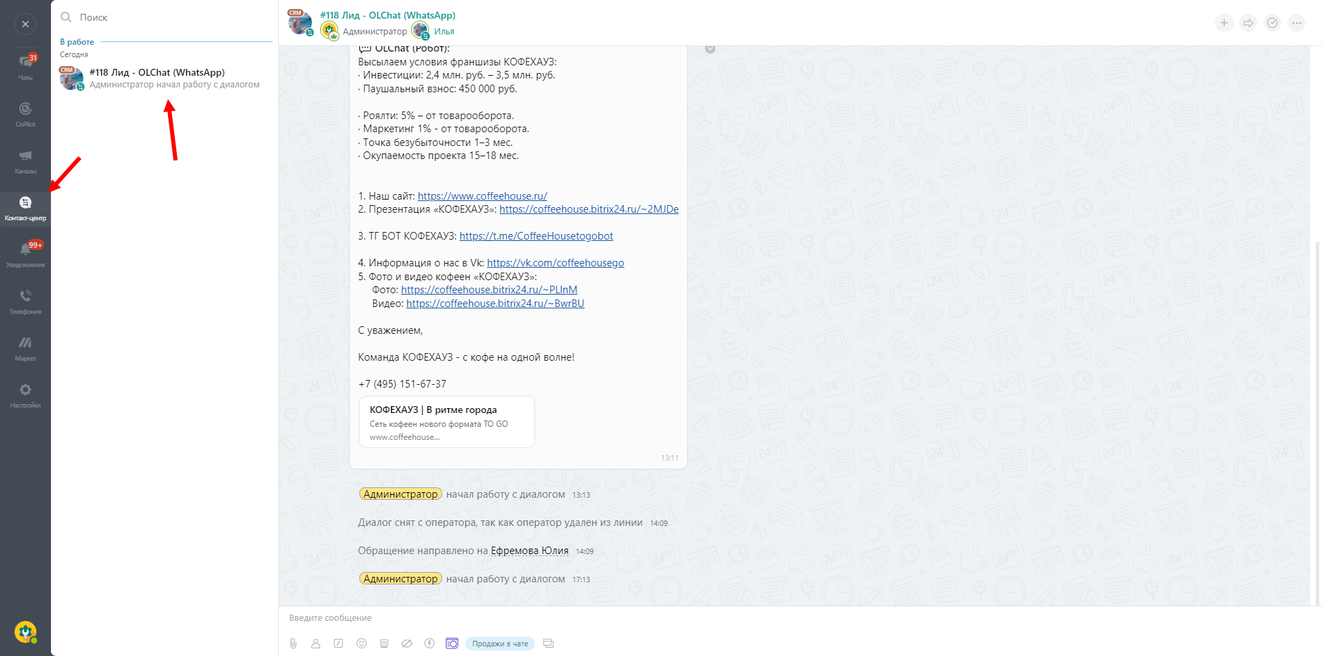 Инструкция по работе с OLChat (приложение для работы с WhatsApp из Битрикс24)