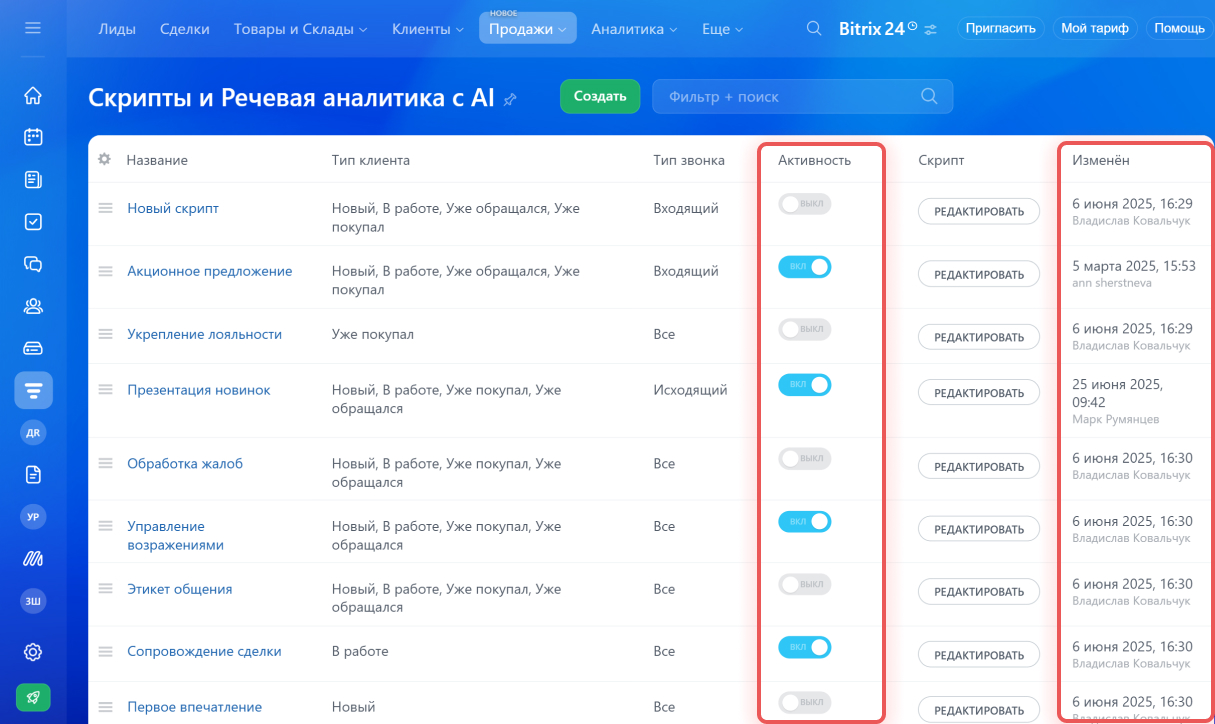 Скрипты для звонков в Битрикс24. AI-анализ звонков