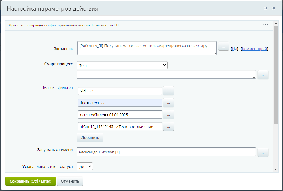 12. Получить массив элементов смарт-процесса по фильтру